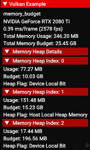 This sample demonstrates how to incorporate the Vulkan memory budget extension.